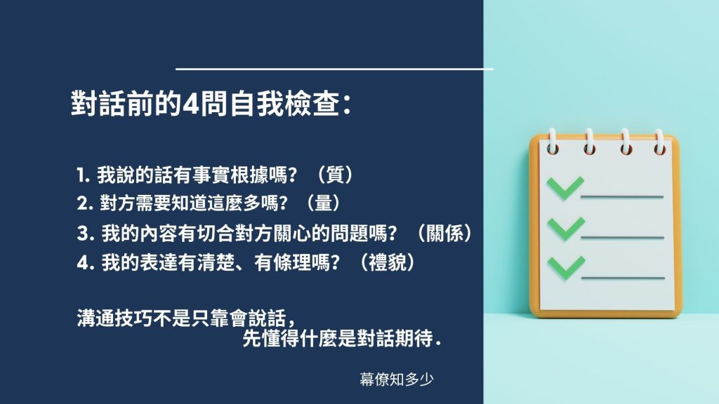 費盡心力說個不停,但得不到預期的效果。不妨停下來,想想「對話期待」的四個原則,你忽略了哪個?